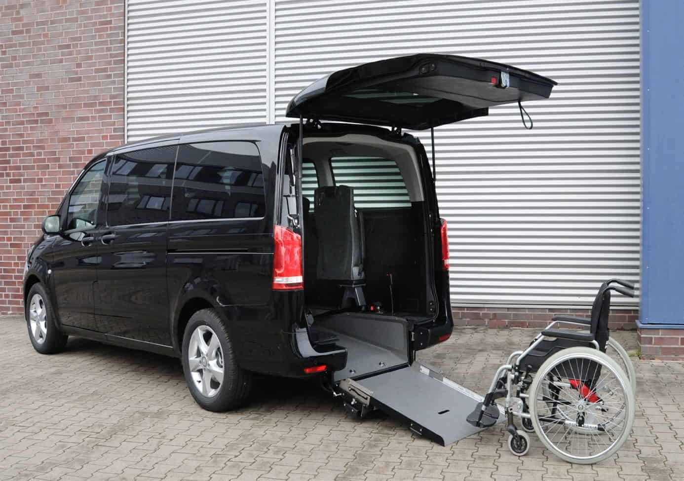 This van seats One wheelchair passenger and up to 3 seated adults with luggage, and like all of our vans, it has front and rear air conditioning.